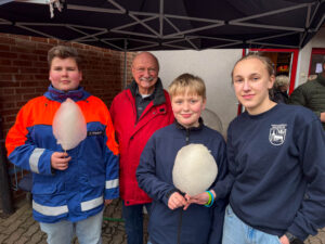 Jugendfeuerwehrwart Tim Schneidenbach und seine Stellvertreter Svenja Lange und Matthis Lemke bedankten sich bei allen Gästen und Helferinnen und Helfern für einen gelungenen Tag.