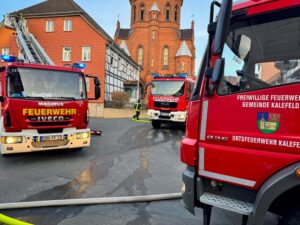 Um 17:08 Uhr wurden die Einsatzkräfte zu einem angenommenen Zimmerbrand im Gebäude der Gemeindeverwaltung Kalefeld alarmiert. Laut Übungslage galten mehrere Personen als vermisst, zudem wurde ein Feuer im Keller gemeldet.