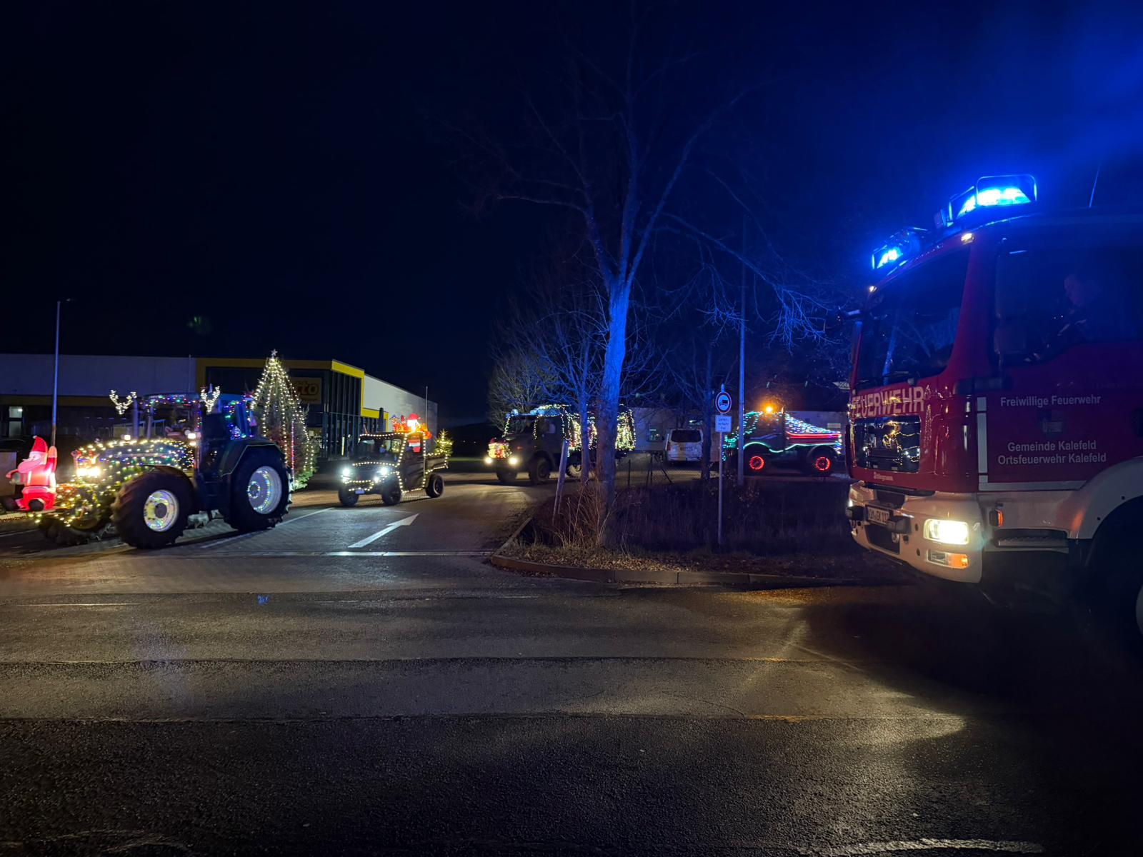 Die Feuerwehr Kalefeld übernahm währenddessen die Verkehrsabsicherung, begleitete die Kolonne und sperrte die Straßen für den Durchgangsverkehr, damit die Lichterfahrt sicher und reibungslos stattfinden konnte.